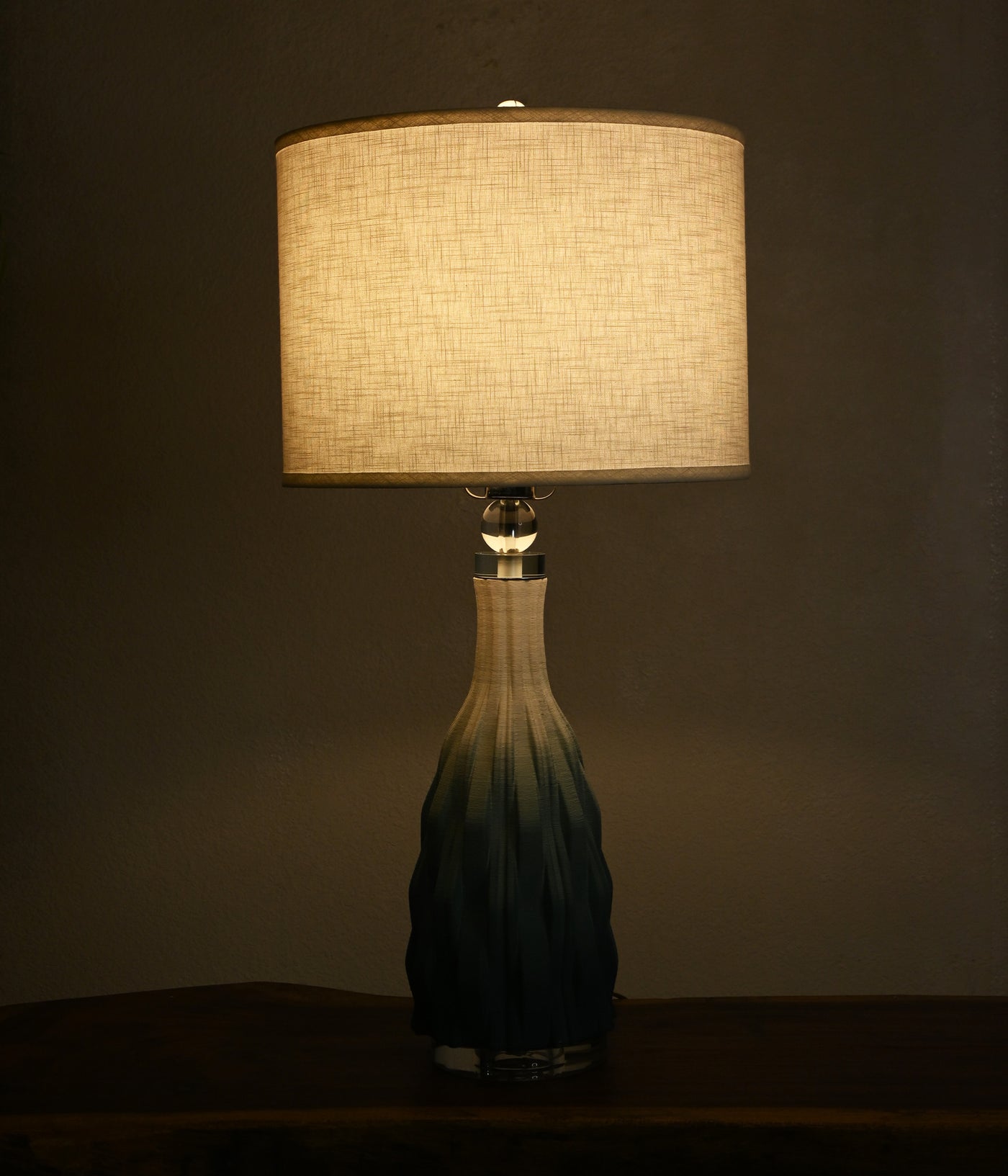 Soft gradients of ocean blue blend across this ceramic base, giving it a handcrafted, time-softened look. Its subtle color shift adds depth without overpowering, making it a versatile accent piece for modern, coastal, or transitional décor styles.